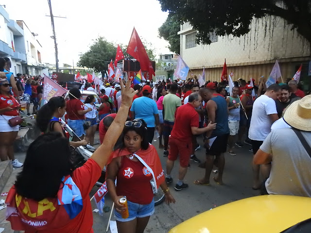 Pelo outro lado, o TIME de LULA, com o governador Rui Costa, o candidato a governo da Bahia, Jerônimo, o deputado federal, Paulo Magalhães, o prefeito de Itabuna, Augusto Castro, assim como prefeitos de outras cidades, vereadores, lideranças política do PT, presidentes de associações de moradores e muita gente das comunidades itabunense. A caminhada teve início em frente ao colégio CISO no bairro de Fátima, onde percorreu por ruas do mesmo até o final de linha do Bairro Califórnia.